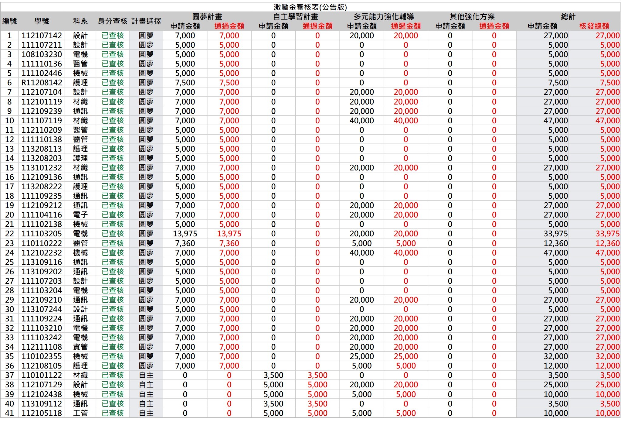 114年完善計畫,8月份學習激勵金通過名單如下表,核發明細詳見公告。