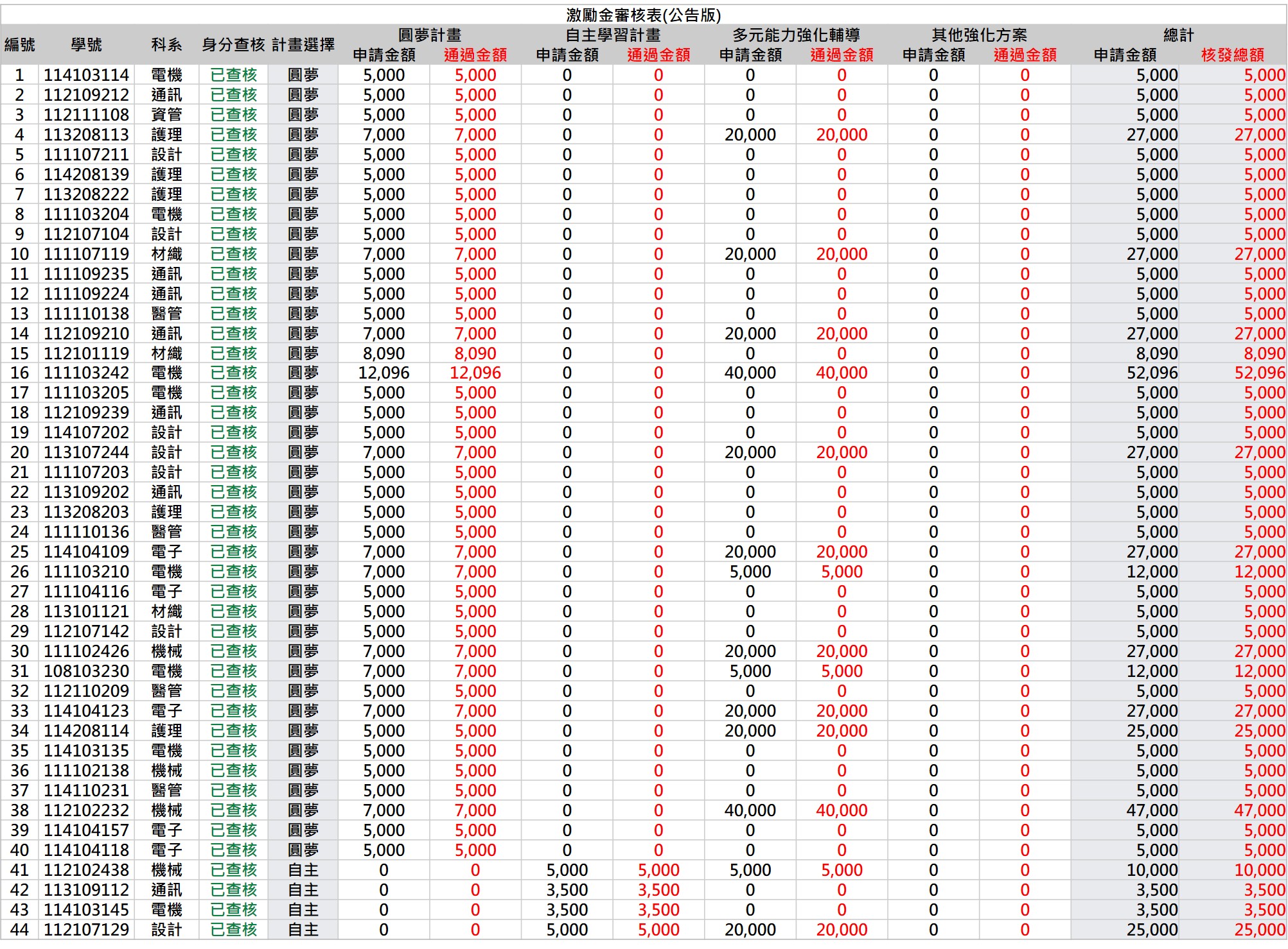 115年完善計畫,2月份學習激勵金通過名單如下表,核發明細詳見公告。